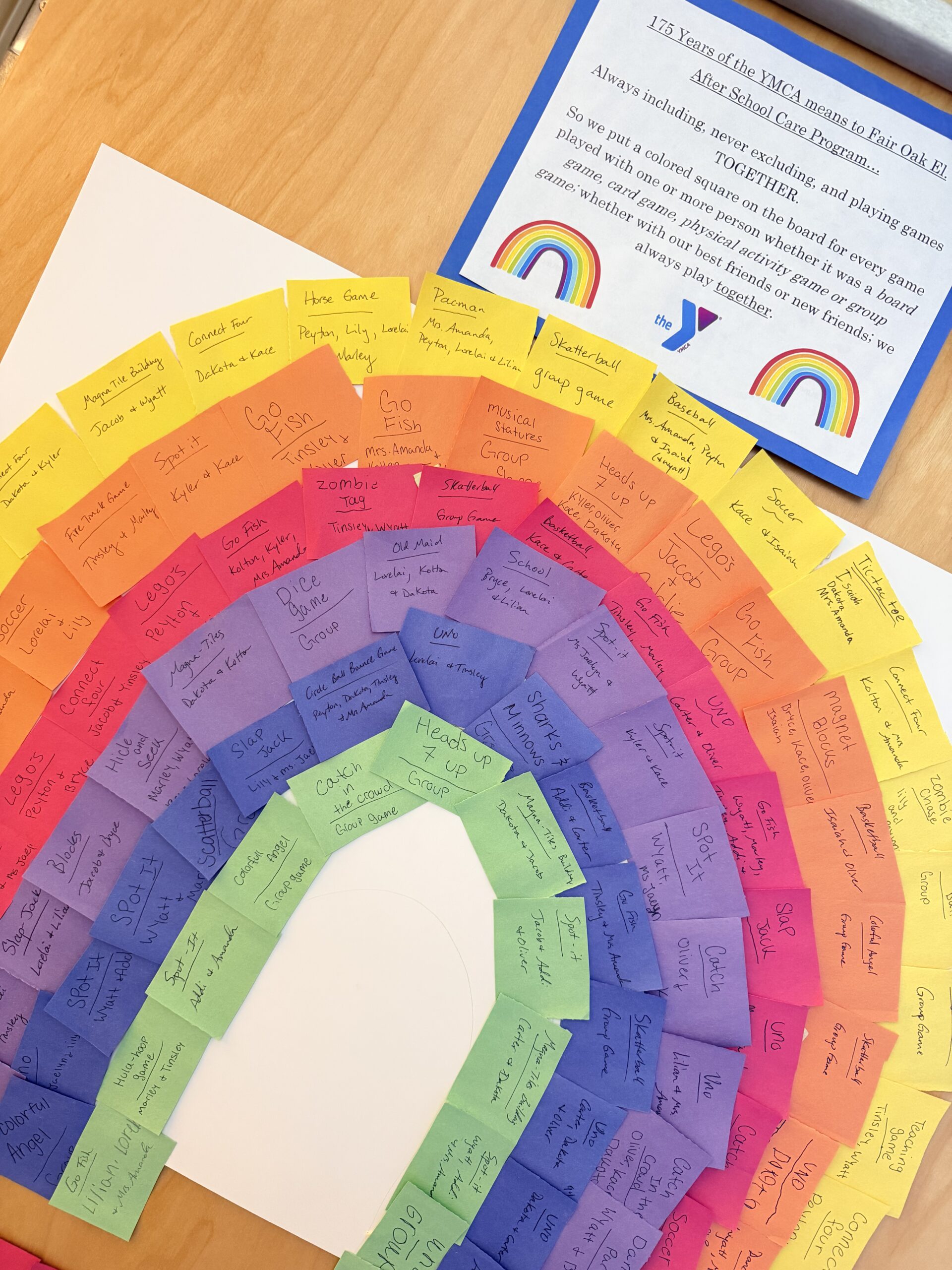 Our Fair Oak Elementary After School Care program just completed their final rainbow representing an incredible 175 games played together in honor of the YMCA’s 175 years of impact in the USA!